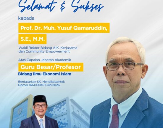 WR III UMPalopo Dr. Muh. Yusuf Qamaruddin Resmi Raih Guru Besar Bidang Ekonomi Islam Universitas Muhammadiyah Palopo (UMPalopo) kembali menorehkan capaian akademik melalui